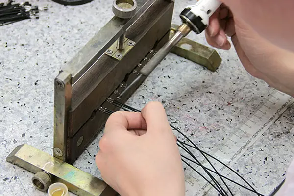 Изготовление жгутов осуществляется по техническим требованиям заказчика любой сложности и любым количеством ответвлений в соответствии с ГОСТ. Для изготовления жгутов технологами разрабатывается специальная оснастка для обеспечения повторяемости. Лентообработка, бандаж и изолирование жгутов осуществляется вручную с использованием специального инструмента.