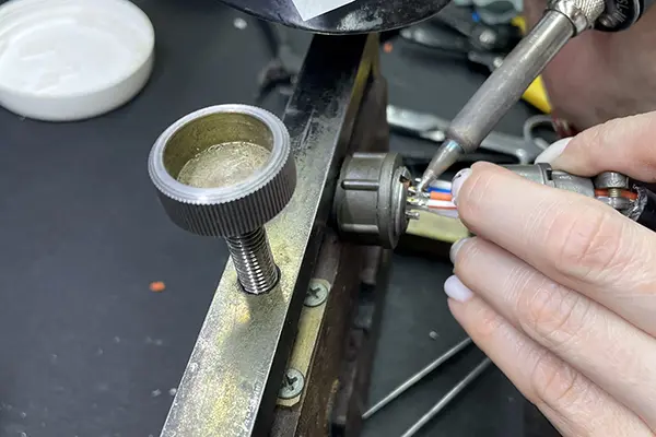 Пайка разъемов осуществляется по чертежам и техническим требованиям заказчика. Используются любые виды припоя по требованию заказчика, такие как: припои оловянно-свинцовые или ПОС, припои медно-цинковые или ПМЦ, бес свинцовые припои, паяльные пасты и другие. Для обеспечения высокого качества пайки технологами подбираются подходящие флюсы при согласовании с заказчиком. Одной из важнейших операций после пайки является промывка флюса, которая осуществляется на специализированном оборудовании с учетом специфики паяных соединений. Выходной контроль пайки и высококвалифицированные работники позволяют практически полностью исключить брак на производстве